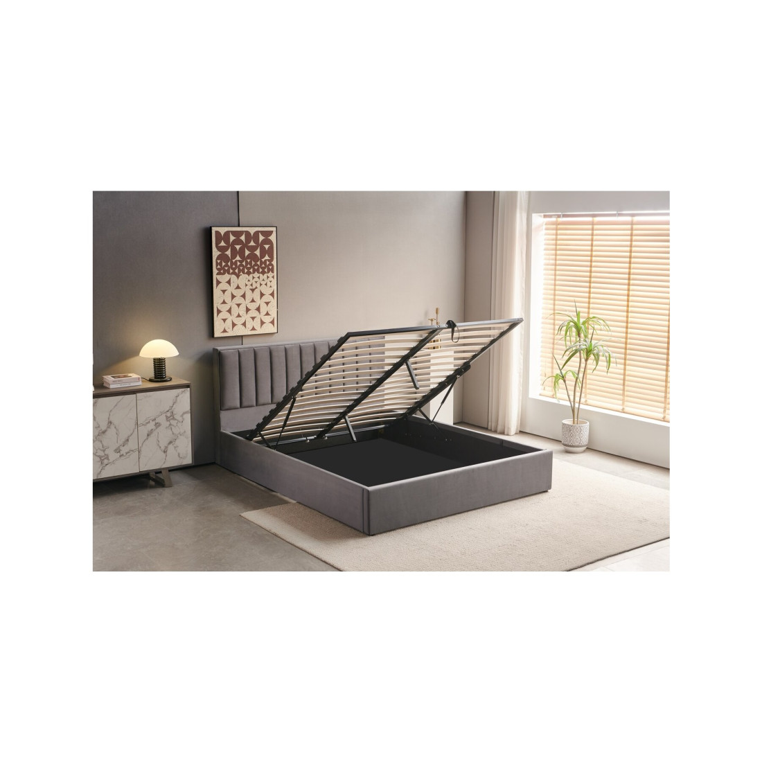Pat Tapitat Blanca, Dimensiune Saltea 140 x 200 Cm, Somiera Rabatabila, Lada Depozitare, Gri-01