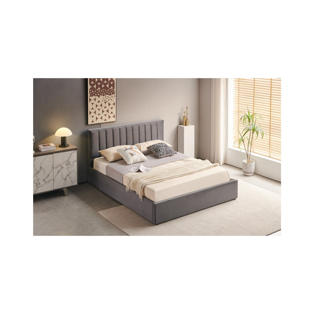 Pat Tapitat Blanca, Dimensiune Saltea 140 x 200 Cm, Somiera Rabatabila, Lada Depozitare, Gri