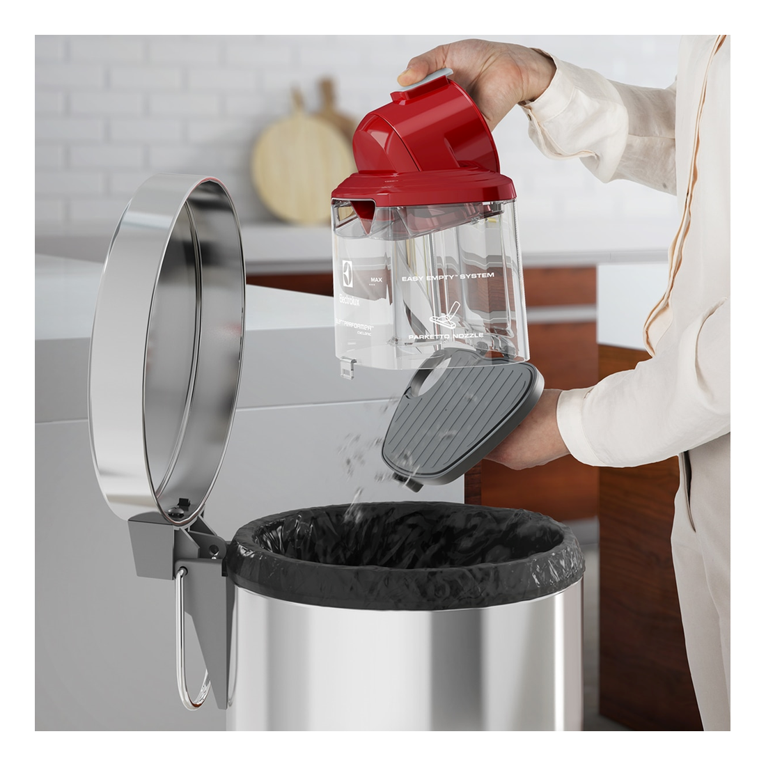 - Sistem de golire Easy Empty™: Sistemul de golire permite eliminarea prafului fara a intra in contact cu el. Deschide pur si simplu capacul si lasa praful sa cada in cosul de gunoi.