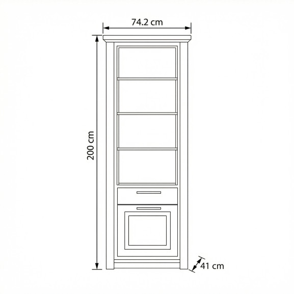 Dimensiuni: Lățime 74.2 cm x Adâncime 41 cm x Înălțime 200 cm – ideală pentru optimizarea spațiului pe verticală.