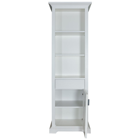 Biblioteca are un rol dublu intr-o incapere, ea ofera un loc de depozitat carti dar si un loc pe care poti sa il personalizezi cu obiecte de decor inedit. Biblioteca Verona iti ofera loc pentru toate si un plus de eleganta si originalitate locuintei tale. Biblioteca Verona pune accent pe simplitate, abundentă, oferind un aer chic locuintei tale. Cu dimensiunile 650 mm latimea, 420 mm adancimea si 2000 mm inaltimea, biblioteca Verona cu nuanta de alb creeaza o atmosfera primitoare si luminoasa. Cele 3 rafturi deschise din partea superioara sunt ideale pentru carti sau obiecte decorative. Sertarul din mijloc are sistem de deschidere/inchidere tip Push To Open, ideal pentru organizarea si accesul rapid catre produse de dimensiuni reduse, iar partea inferioara este prevazuta cu doua rafturi acoperite cu o usa.