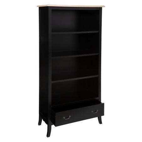 Blatul din lemn aduce caldura structurii negre pentru o redare plina de autenticitate. Sublimand o piesa de mobilier retro, silueta delicata a bibliotecii Chysta îi confera o nota placuta de romantism.