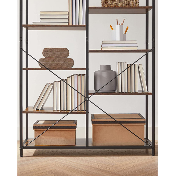 Biblioteca Cu 5 Niveluri, Maro Rustic Si Negru, 100 Cm-01