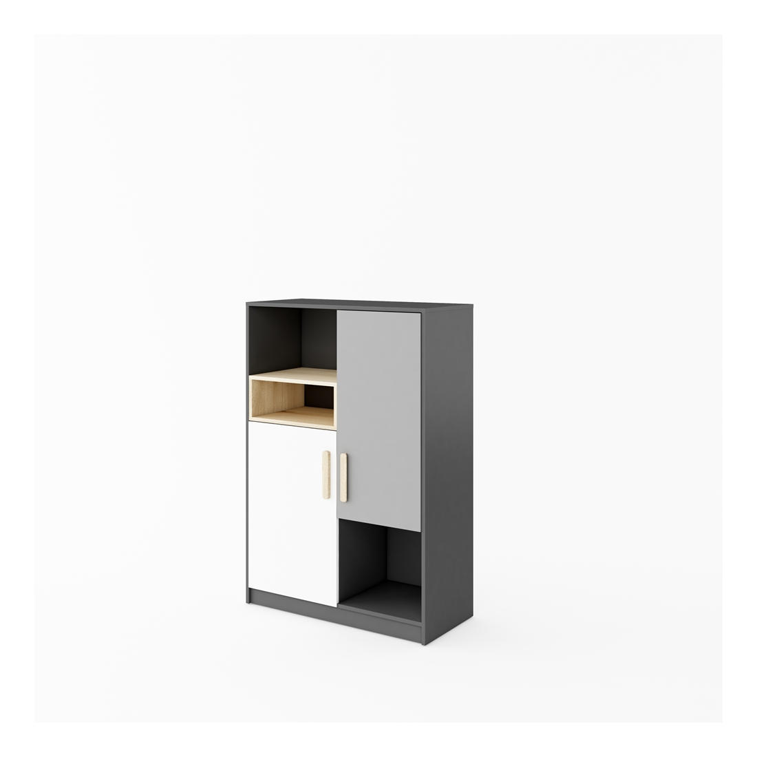 Biblioteca Mica Poka Cu 2 Usi Si 1 Nisa , Grafit, Fag Ibsen Si Gri Deschis, 90 Cm-01