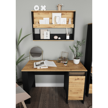Birou Dot Cu Iluminare Cu 1 Usa Si 1 Sertar, Stejar Negru Si Artizan, 122 Cm-01