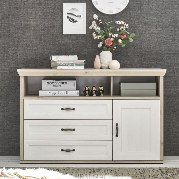 Ai ca exemplu comoda Tiziano, cu un design al sertarelor foarte interesant și o culoare stejar antic&bej lucios, care are pur și simplu în ea ceva frumos, stilistic vorbind, însă și ce pui tu va fi, cu siguranță, foarte prețios.