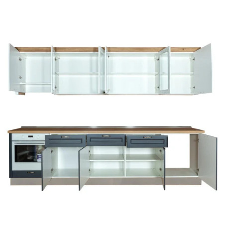 Bucatarie Libra, Alb Si Grafit, Front Mdf Vopsit, 307.6 X 223 X 60 Cm