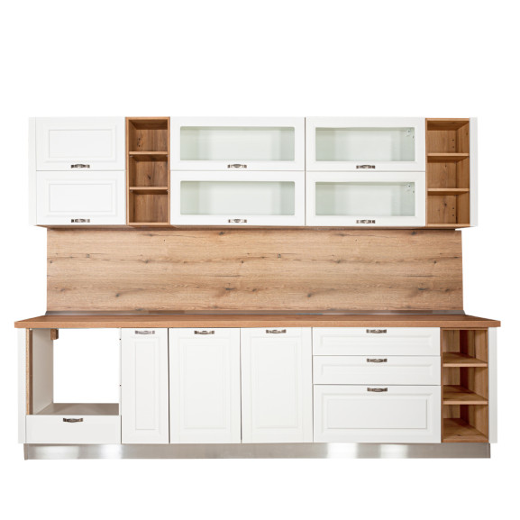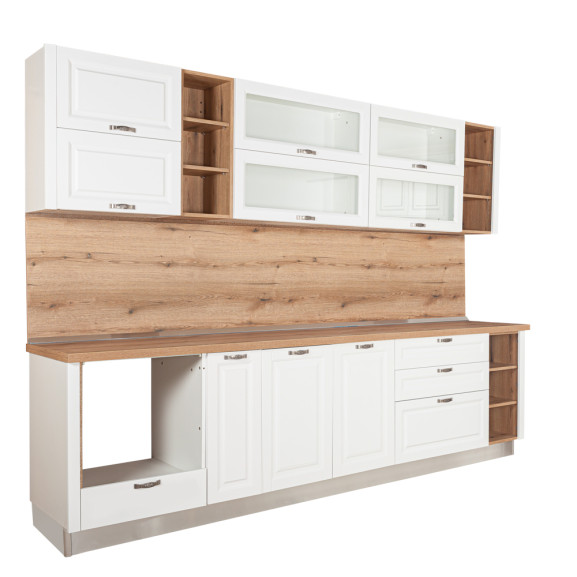 Bucatarie Virgo Alb Si Natur, Front Mdf Vopsit, 302 X 223 X 60 Cm