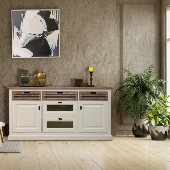 Bufet Cortina, 4 Usi Si 3 Sertare, Alb si Natur, 176.4 Cm