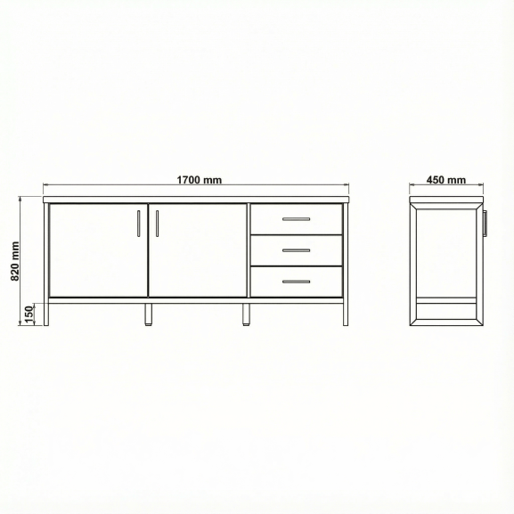 Cele 2 uși și 3 sertare ale bufetului oferă un spațiu amplu pentru organizarea eficientă a obiectelor personale, veselă sau a altor elemente esențiale. Este soluția perfectă pentru păstrarea ordinei în spațiul dumneavoastra de locuit.