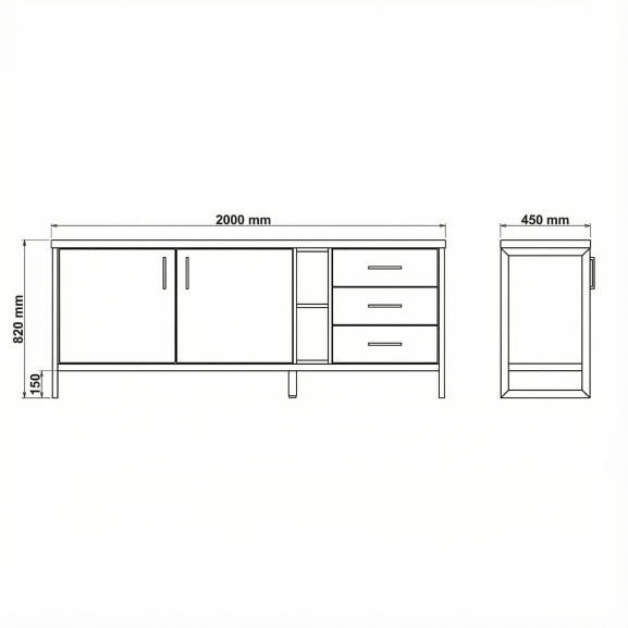 Bufetul Reno cu 2 uși și 3 sertare nu este doar un element de depozitare, ci și o expresie a gustului pentru calitate și design. Prin combinația sa de funcționalitate și eleganță, acest bufet oferă un element de focalizare în spațiul dumneavoastră, reflectând un stil rafinat și atenție la detalii.