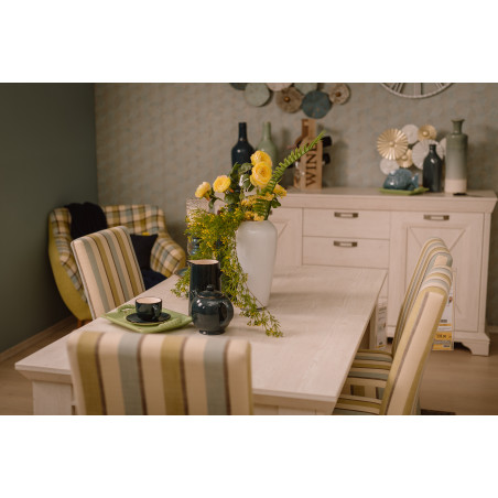 Stilul Provansal este recunoscut pentru simplitatea sa sofisticată și pentru atmosfera sa rustică. Bufetul Kashmir preia aceste caracteristici și le aduce în locuința ta, creând un spațiu care emană farmec și eleganță.