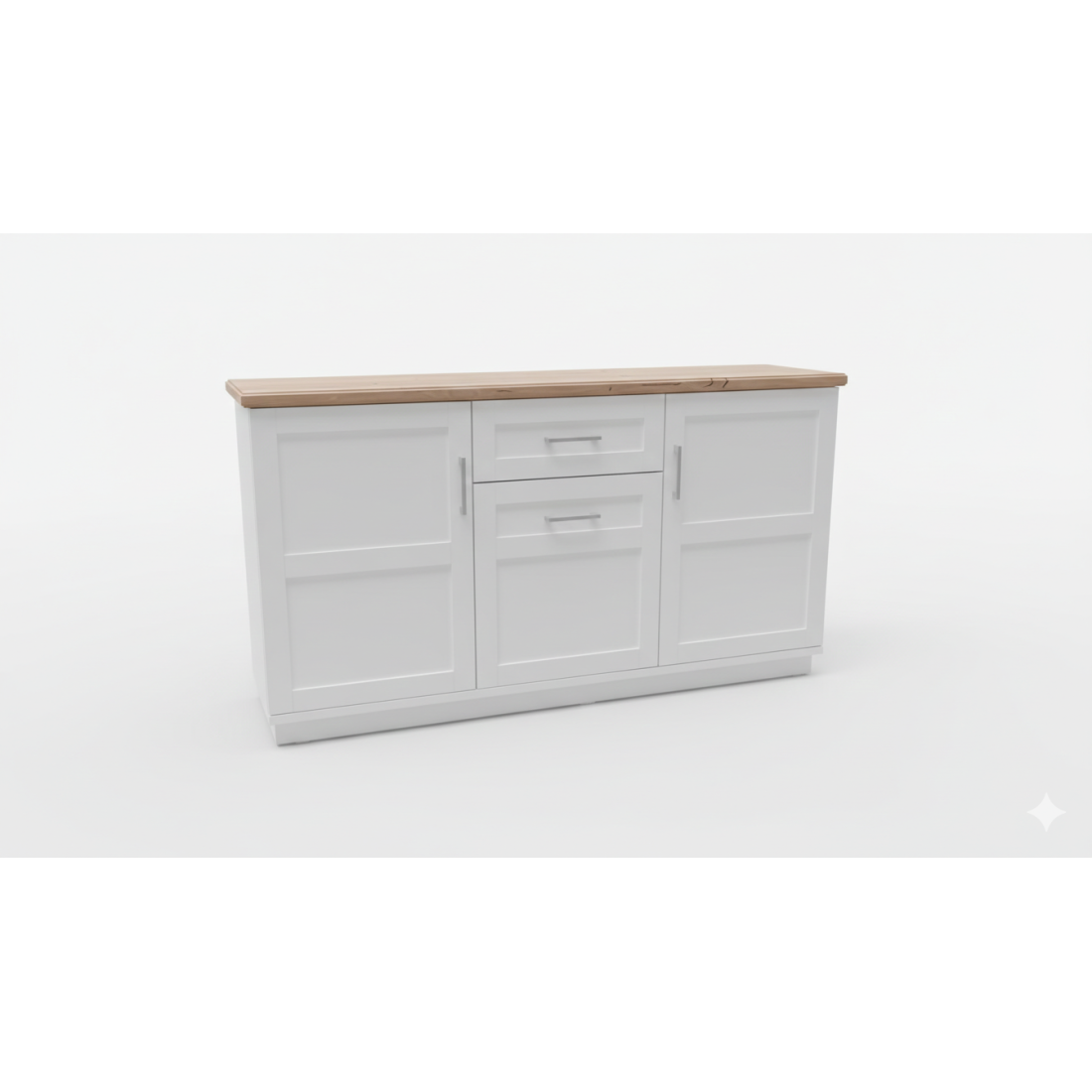 Completează decorul casei tale cu acest bufet elegant și extrem de practic, o piesă de mobilier care impresionează prin simplitate și calitate. Finisajul alb vopsit aduce luminozitate și un aer curat încăperii, în timp ce blatul superior, acoperit cu furnir de stejar natural, adaugă acea notă caldă și nobilă pe care doar lemnul o poate oferi.