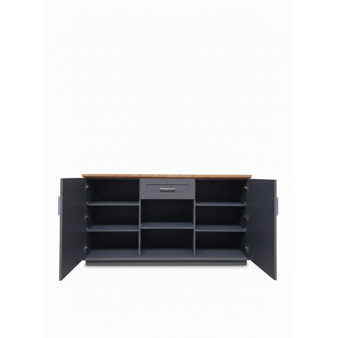 Bufet Cu 3 usi si 1 sertar Dining Alpina Graphit Matt, Gri Si Natur 166 Cm-01
