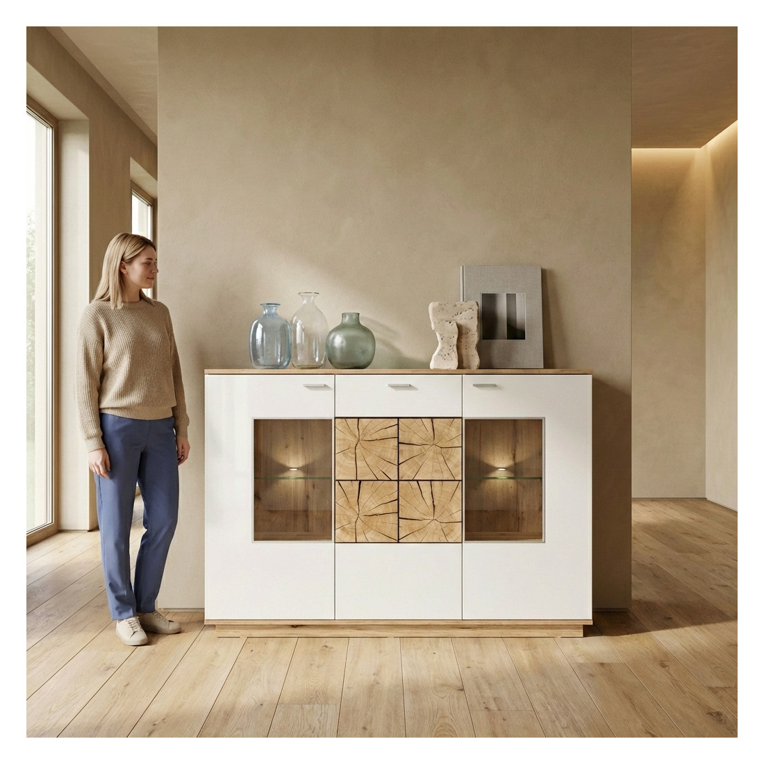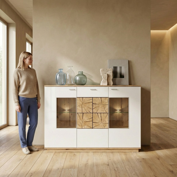 Adaugă un element distinctiv în interiorul casei tale cu Bufetul Dakota, un amestec rafinat de design contemporan și funcționalitate inovatoare.