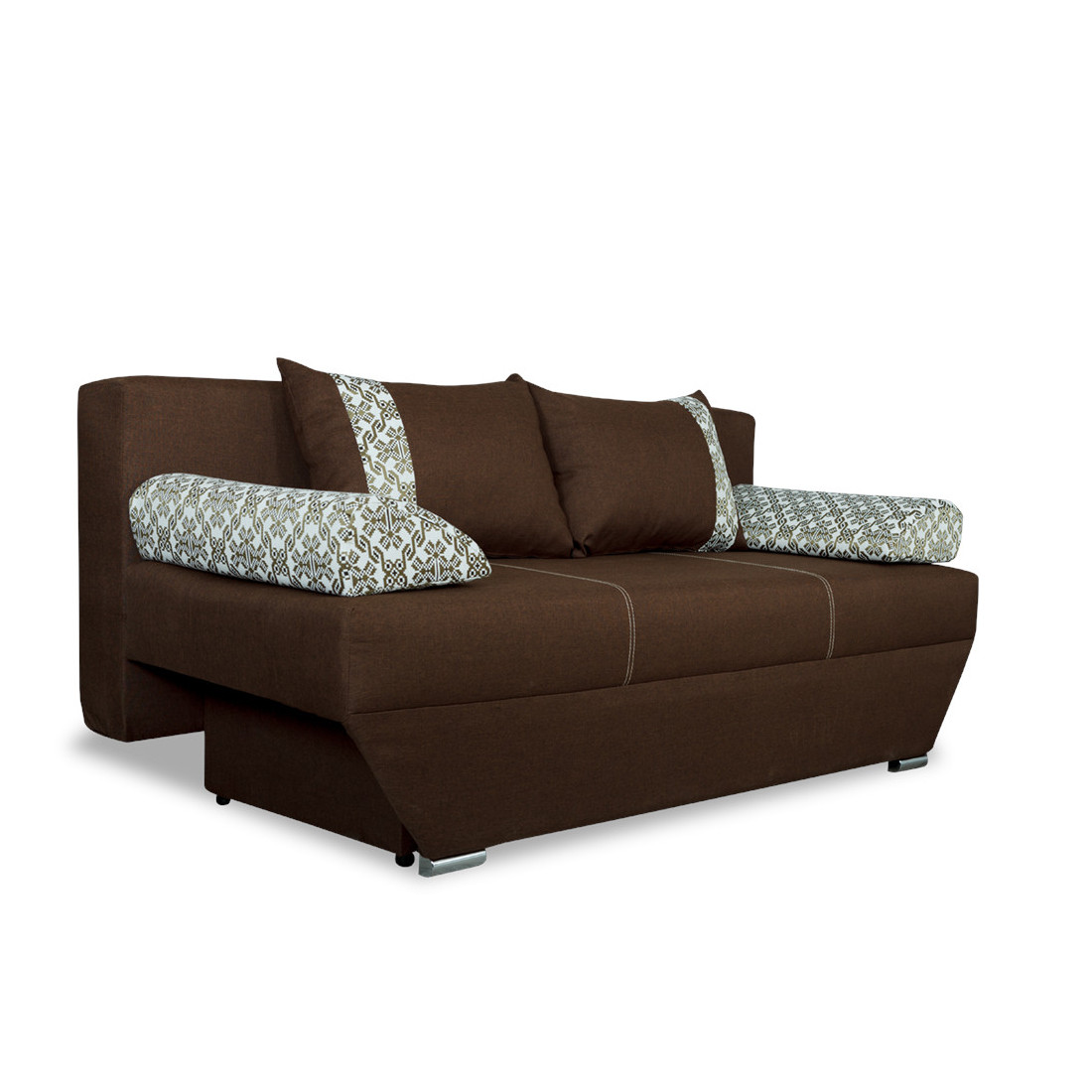 Canapeaua Alma este realizat intr-un design simplu si elegant, cu tapiterie in nuante de maro si verde/alb. Acesta confera eleganta spatiului unde este amplasata. Sezutul este realizat din spuma poliuretanica, asigurand confort. Lada permite pastrarea mereu la indemana a unor articole necesare frecvent, precum perne, patura sau lenjerie. Un loc de relaxare, de somn, un loc unde te poti retrage pentru a citi sau locul unde petreci o seara linistita cu cei dragi, acesta este canapeaua Alma.