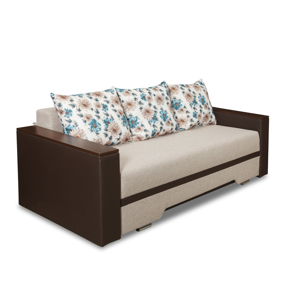 Canapea extensibila realizata din cherestea, PAL hidrofugat, PFL, MDF, carcasa arcuri, poliuretan, minet.