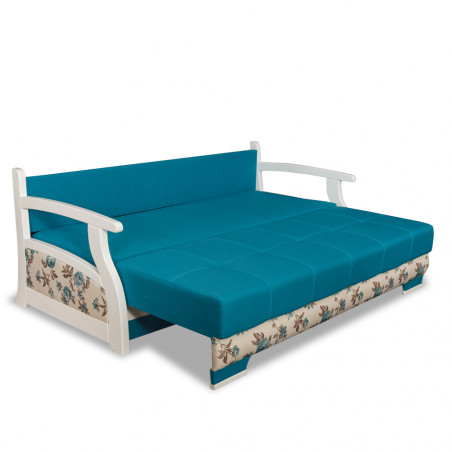 Canapeaua Evelyne se caracterizeaza printr-un stil clasic. Structura acesteia este din lemn masiv de fag care-i ofera unicitate si autenticitate. Desenul fibrei lemoase este vizibil in mod natural. Confortul este asigurat de salteaua de arcuri de 10 cm. Extensia are o structura metalica si lamele elastice de fag.