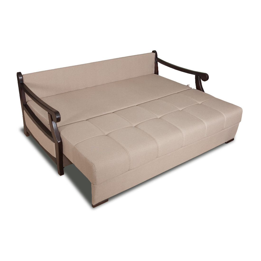 Material:  Schelet metalic + saltea cu arcuri + stofa ;