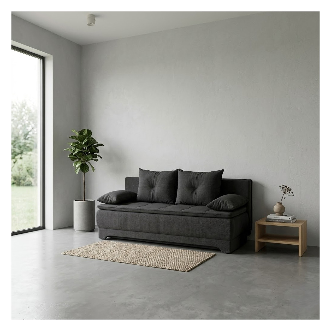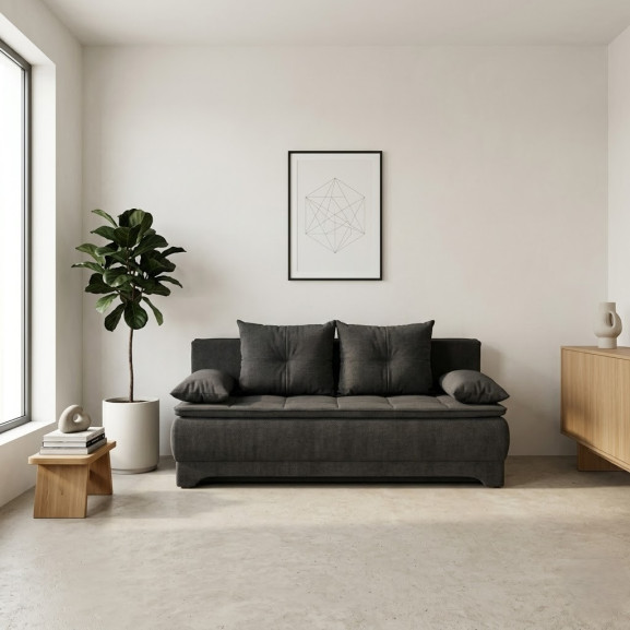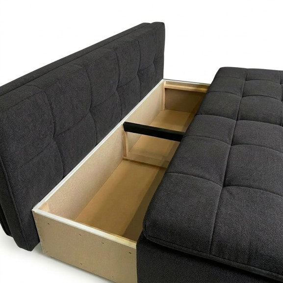 Cadru Rezistent: Structura internă este proiectată pentru a oferi stabilitate maximă și suport optim atât în poziția de canapea, cât și în cea de pat.
