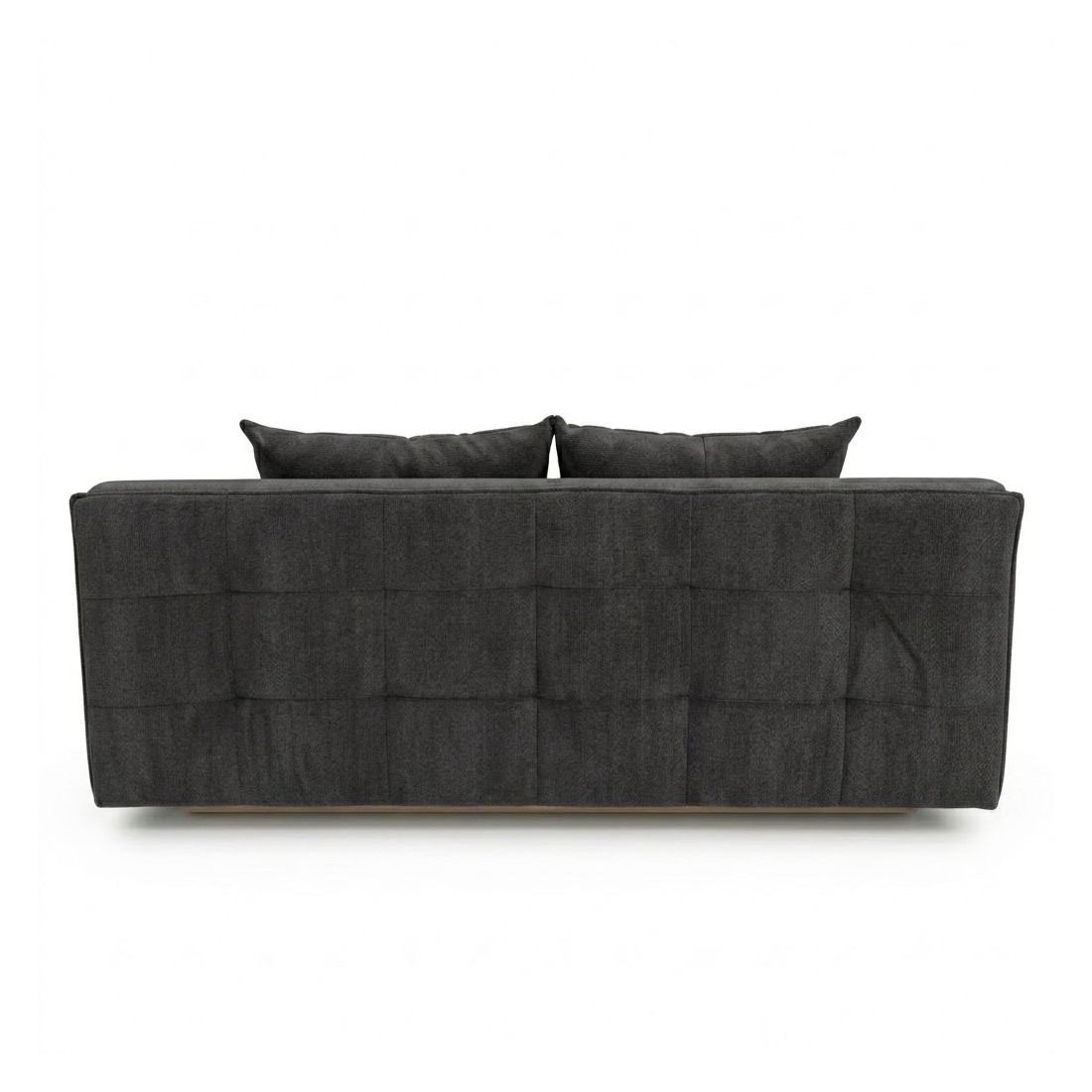 Detaliile de design, precum cusăturile geometrice sub formă de pătrate de pe șezut, nu oferă doar un aspect vizual deosebit, ci asigură și menținerea formei materialului pe termen lung. Pernele de spătar voluminoase și cele două perne laterale moi garantează o postură relaxată, transformând orice seară de film într-o experiență premium.