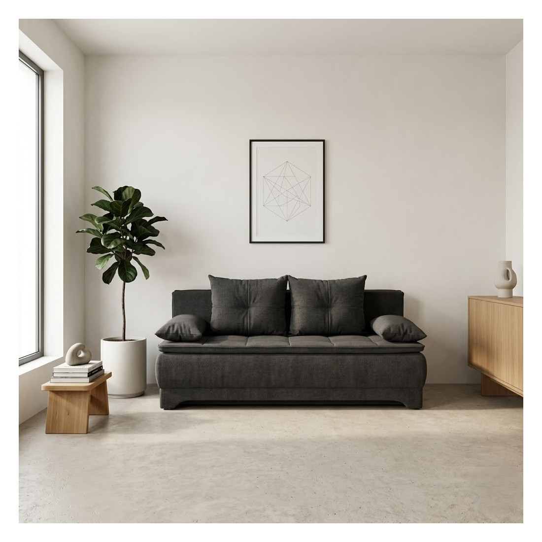 Cadru Rezistent: Structura internă este proiectată pentru a oferi stabilitate maximă și suport optim atât în poziția de canapea, cât și în cea de pat.