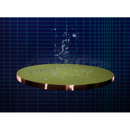 Țesătura este acoperită cu un film protector special, creând un strat rezistent la apă, care protejează împotriva absorbției rapide a lichidelor. În loc să fie imediat absorbită, apa este condensată pe suprafața materialului.