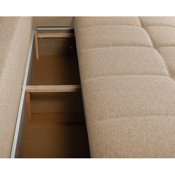 Unul dintre punctele forte ale canapelei Green este lada de depozitare spațioasă integrată în designul său inteligent. Această ladă oferă un spațiu util și practic pentru a păstra lenjeria de pat, pernele sau alte obiecte personale, economisind astfel spațiu în cameră și contribuind la organizarea impecabilă a locuinței dumneavoastră.