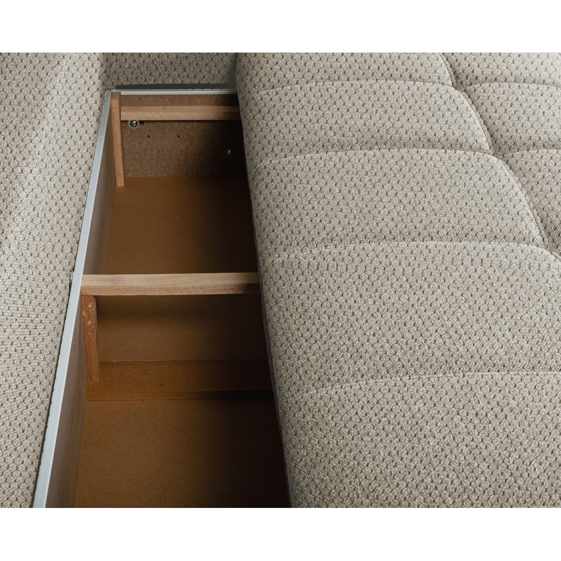 Unul dintre punctele forte ale canapelei Green este lada de depozitare spațioasă integrată în designul său inteligent. Această ladă oferă un spațiu util și practic pentru a păstra lenjeria de pat, pernele sau alte obiecte personale, economisind astfel spațiu în cameră și contribuind la organizarea impecabilă a locuinței dumneavoastră.