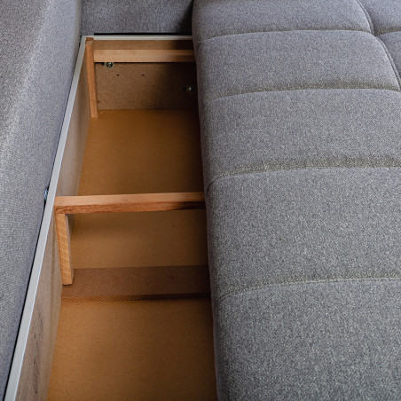 Unul dintre punctele forte ale canapelei Otis este lada de depozitare spațioasă integrată în designul său inteligent. Această ladă oferă un spațiu util și practic pentru a păstra lenjeria de pat, pernele sau alte obiecte personale, economisind astfel spațiu în cameră și contribuind la organizarea impecabilă a locuinței dumneavoastră.