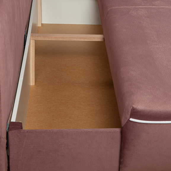 Unul dintre aspectele remarcabile ale acestei canapele este lada de depozitare integrată. Aceasta oferă un spațiu util și bine organizat pentru depozitarea diferitelor obiecte, cum ar fi lenjeria de pat suplimentară, pernele sau alte elemente indispensabile în living. Astfel, poți profita la maximum de spațiul disponibil și poți păstra ordinea și curățenia în cameră.