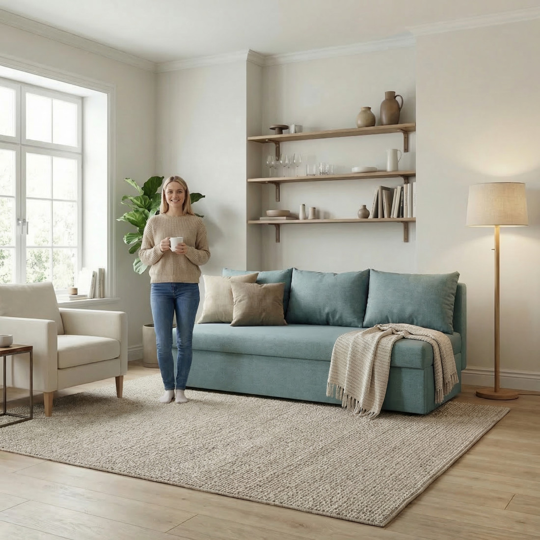 Canapea extensibila realizata din lemn masiv de fag si panouri aglomerate din aschii de lemn. Confortul si rezistenta in timp a confortului este asigurat prin folosirea arcurilor sinusoidale si a spumei poliuretanice de inalta rezistenta.