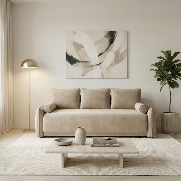 Canapea Extensibila Vida, 3 Locuri, Lada Depozitare, Bej, 225 Cm