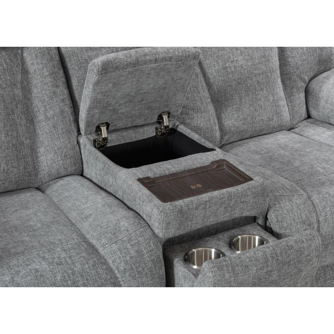 Consolă Centrală cu Suport de Pahare: Partea centrală a canapelei se poate plia pentru a dezvălui un suport practic pentru băuturi, ideal pentru serile de maraton de seriale.