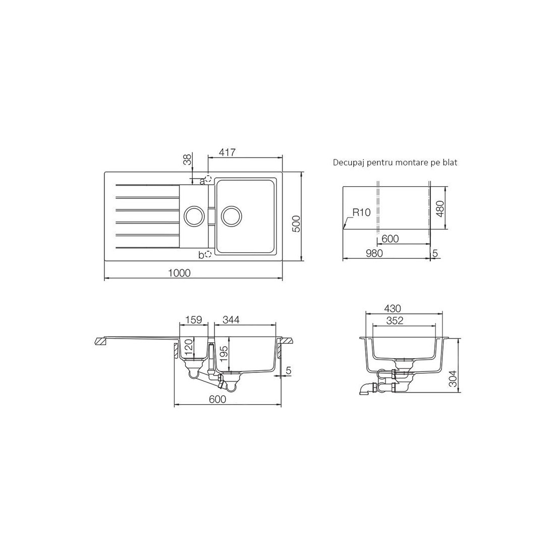 Chiuveta Granit Schock Signus D-150 Bronze Cristadur 1000 x 500 mm cu montare pe blat si 1 cuva + ½ cu picurator este destinata adaptarii corpurilor de chiuveta de minim 60 cm. Chiuveta este reversibila, gaura pentru baterie este prefrezata si se face cu ajutorul carotei inclusa in coletul de livrare. Ceea ce surclaseaza acest model este chiar materialul de productie - CRISTADUR®, care se remarca prin suprafata densa, neporoasa, adica extrem de igienica, care nu permite murdariei sau bacteriilor sa adere si sa se fixeze pe suprafata chiuvetei - pentru intretinere facila si un plus de siguranta. Imbinarea designului clasic cu material de ultima generatie a condus la acest concept de chiuveta de calitate si functionalitate exceptionale. Cu cele doua cuve de 120 mm, respectiv 200 mm, aceasta chiuveta ofera spatiu suficient pentru realizarea diverselor sarcini. Iar pentru a preintampina nevoile cele mai riguroase ale clientilor, tehnologia de productie CRISTADUR® ofera culori chiar mai stralucitoare, dar cel mai important, materiale mult mai rezistente decat oricare altele disponibile pe piata, datorita tehnologiei de ranforsare cu fibra din sticla la baza cuvei, pentru a spori rezistenta la impact a materialului de pana la 4 ori. Pachetul include garnitura de scurgere, ventil cos, sifon, cleme si Carota Diamantata. Bronze: O trecere aproape imperceptibila de la gri la maro auriu, cu accente puternic metalizate si textura delicata si fina. Aceasta optiune de culoare este complementul perfect pentru materiale naturale de design, precum aluminiul sau marmura. SCHOCK este inventatorul chiuvetei din granit si este unul din producatorii de top la nivel mondial cu peste 30 de ani de experienta in domeniu, prezent in peste 70 de tari. Peste 80% din chiuvetele de granit vandute la nivel mondial sunt produse folosind tehnologia dezvoltata si patentata de SCHOCK. Linia de produse SCHOCK dispune de chiuvete si robineti pentru fiecare stil si gust: modern, clasic sau rustic. Toate chiuvetele SCHOCK sunt realizate din materiale durabile si ecologice si sunt fabricate exclusiv in Germania respectand standarde de calitate extrem de riguroase. Producator Schock Germany Material CRISTADUR Montare Pe blat Dimensiune chiuveta 1000 x 500 mm Adancime cuva 195 / 120 mm Dimensiune decupaj 980 x 480 mm Dimensiune corp Minimum 60 cm Reversibila Da Culoare Bronze Inclus in pachet de livrare Garnitura de scurgere, ventil cos, sifon si cleme, carota diamantata Greutate 22.00 kg