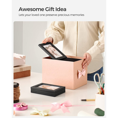 Ramele durabile din lemn prelucrat durează mai mult și adaugă o notă de eleganță pe care ramele din plastic pur și simplu nu o oferă; Fața din sticlă nu numai că vă permite să vă vizualizați clar fotografiile, ci nu se va sparge ușor și, de asemenea, ține praful departe.
