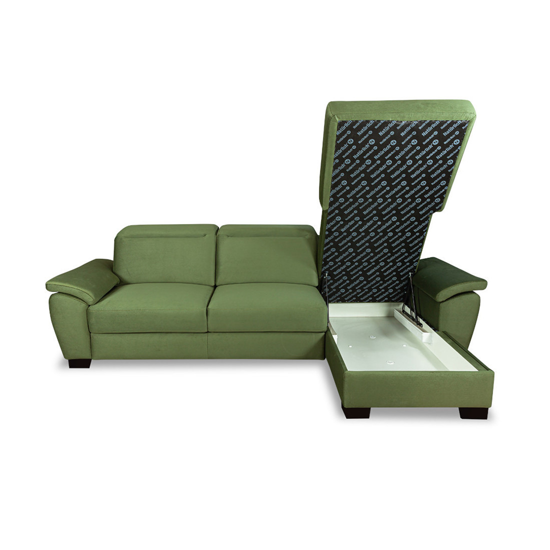 Insula cu ladă de depozitare este o caracteristică ingenioasă a acestui colțar. Cu un spațiu generos pentru lenjeria de pat, jucării sau alte obiecte personale, puteți menține ordinea în cameră fără efort.