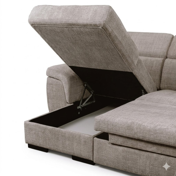 Colțarul Florida este conceput pentru a se potrivi perfect în orice spațiu. Cu posibilitatea de a schimba partea pe care este montat, acesta se adaptează cu ușurință la configurația dumneavoastra de living. Cu o ladă de depozitare generoasă sub șezut, colțarul oferă un spațiu suplimentar pentru a păstra lenjeria de pat, păturile sau alte obiecte personale organizate și la îndemână.