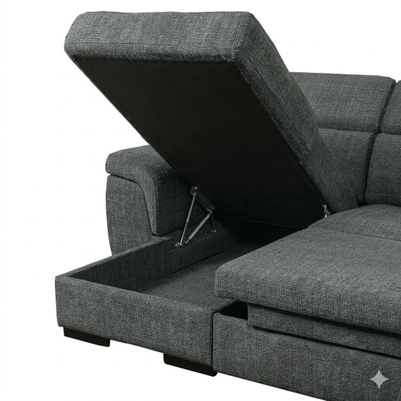 Colțarul Florida este conceput pentru a se potrivi perfect în orice spațiu. Cu posibilitatea de a schimba partea pe care este montat, acesta se adaptează cu ușurință la configurația dumneavoastra de living. Cu o ladă de depozitare generoasă sub șezut, colțarul oferă un spațiu suplimentar pentru a păstra lenjeria de pat, păturile sau alte obiecte personale organizate și la îndemână.