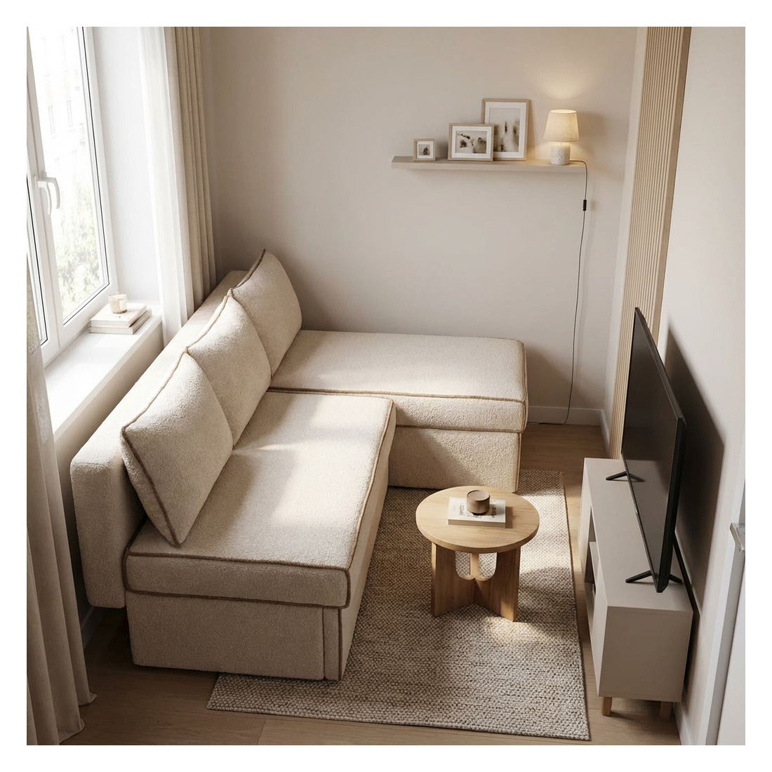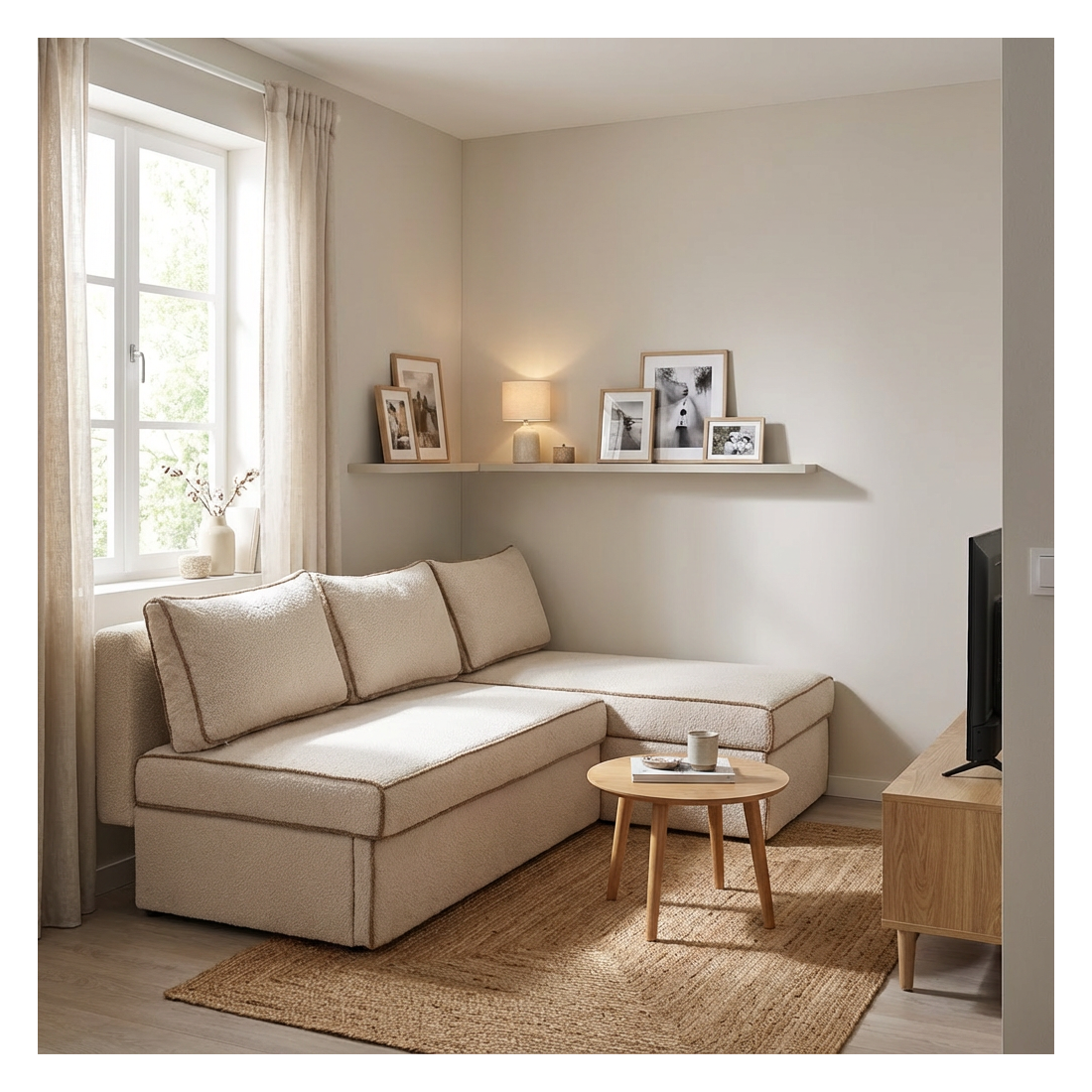 Coltar Extensibil Cu Lada New Modulo, Interschimbabil Stanga/Dreapta, Crem boucle, 220 X 80 X 155 Cm