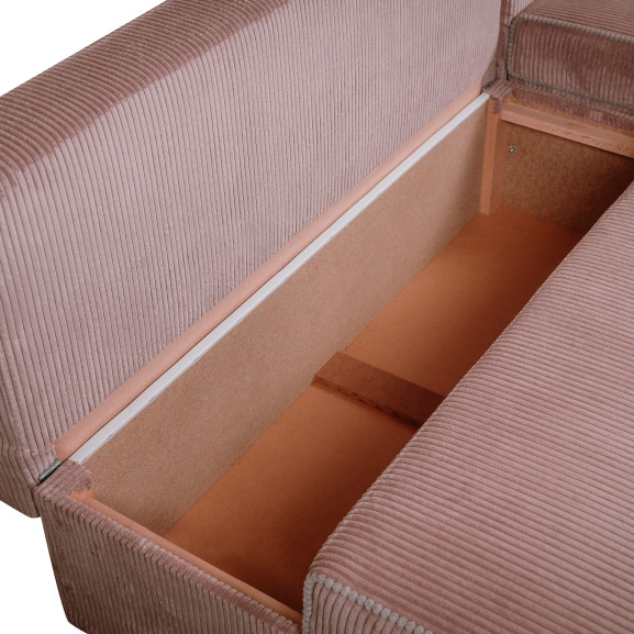 Coltar Extensibil Cu Lada New Modulo, Interschimbabil Stanga/Dreapta, Roz Pudra, 220 x 80 x 155 Cm
