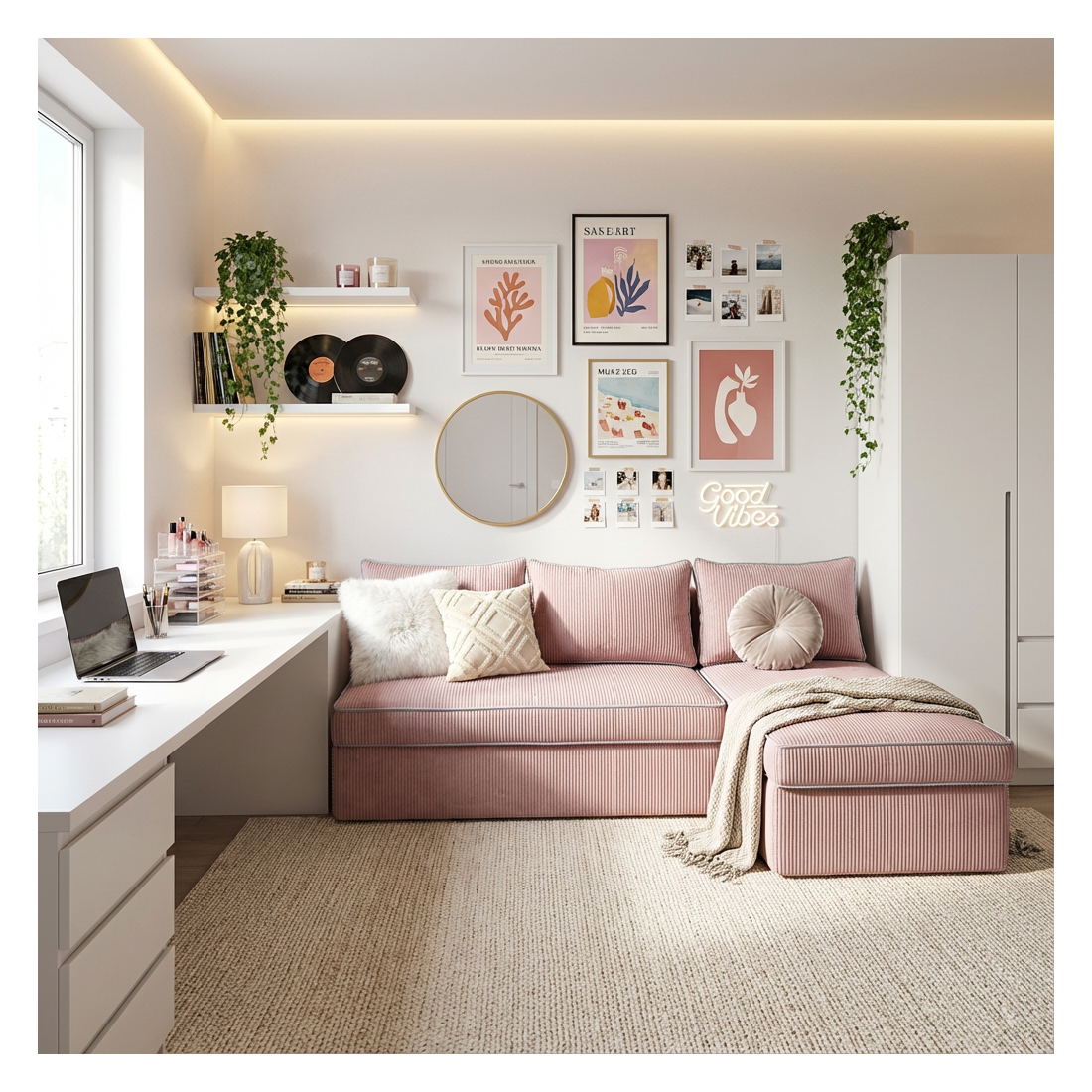 Designul modular al acestui colțar îți permite să-l montezi atât pe partea stângă, cât și pe partea dreaptă, în funcție de preferințele tale și de configurația camerei tale. Acest nivel de personalizare îți permite să optimizezi utilizarea spațiului.