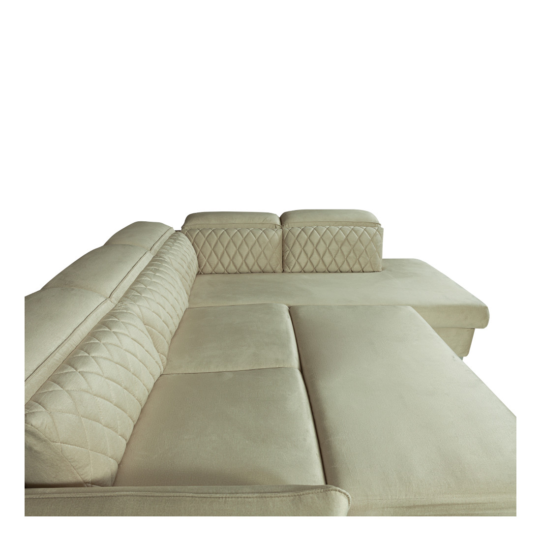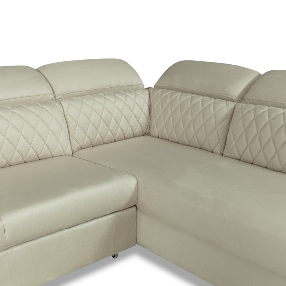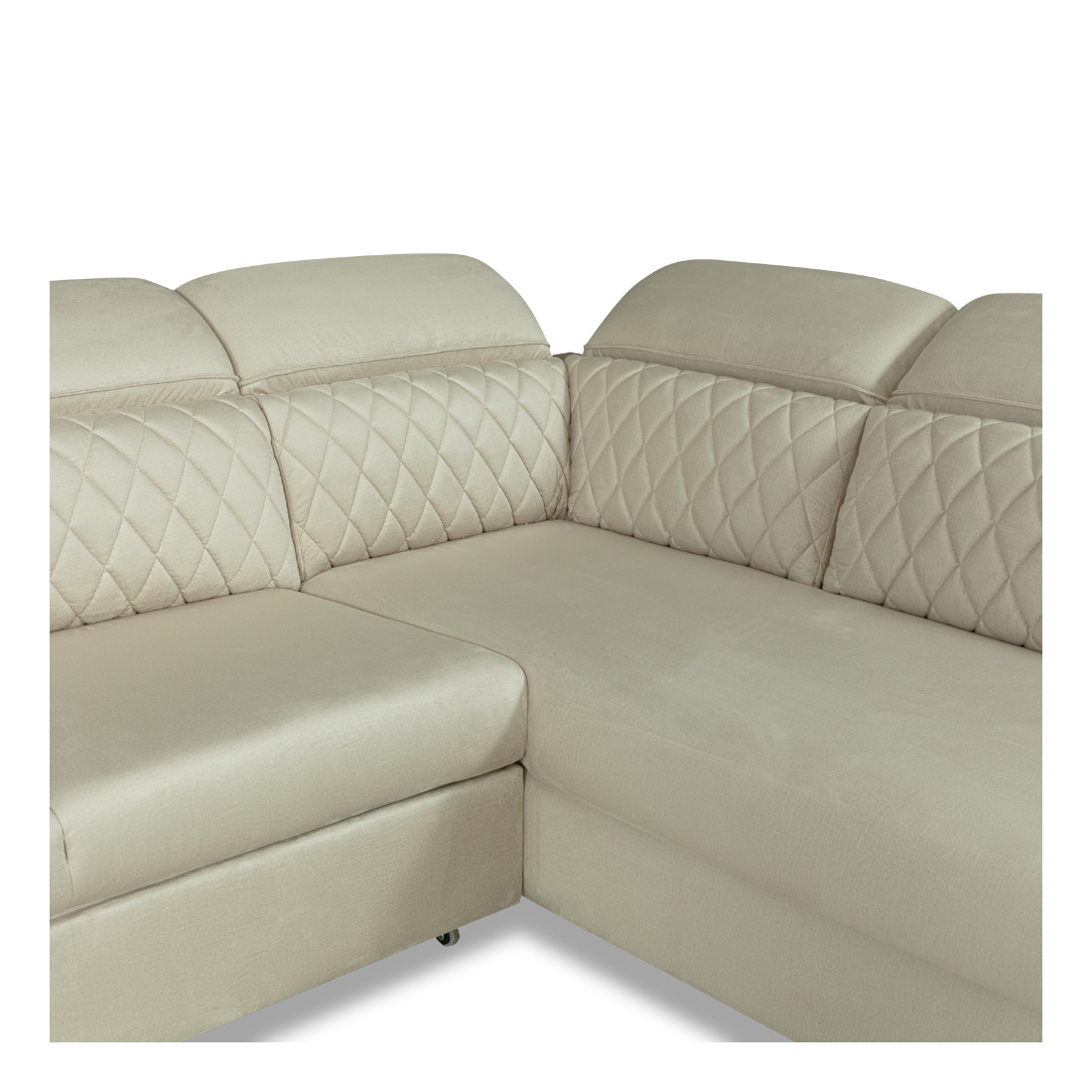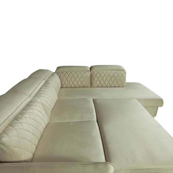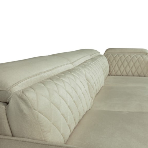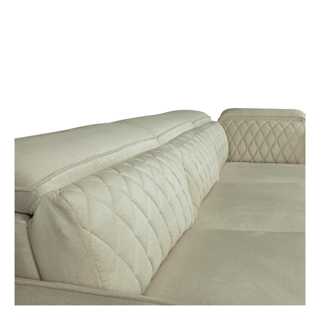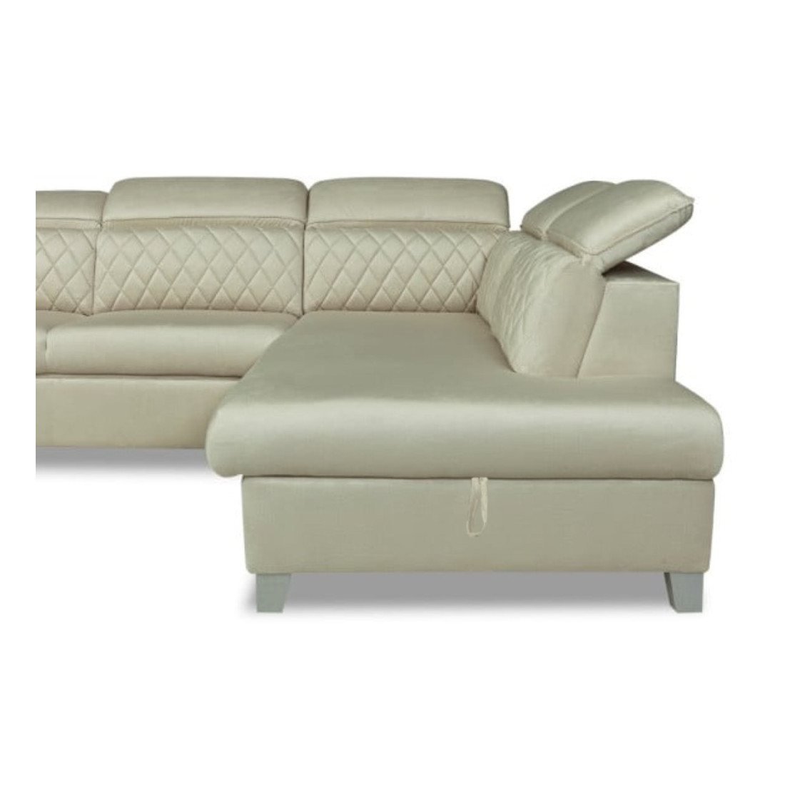 Coltar Extensibil Cu Otoman Dreapta Cu Lada Tiago, 5 Locuri, Tetiere Reglabile, Crem, 255 Cm