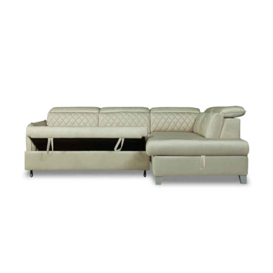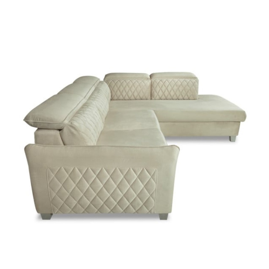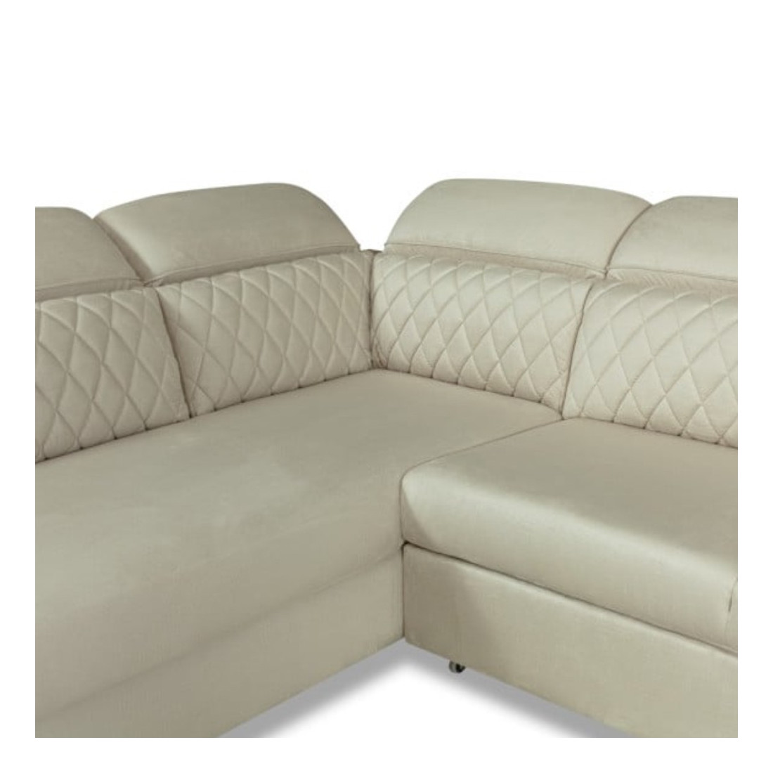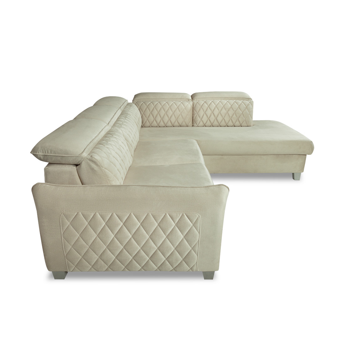 Coltar Extensibil Cu Otoman Dreapta Cu Lada Tiago, 5 Locuri, Tetiere Reglabile, Crem, 255 Cm