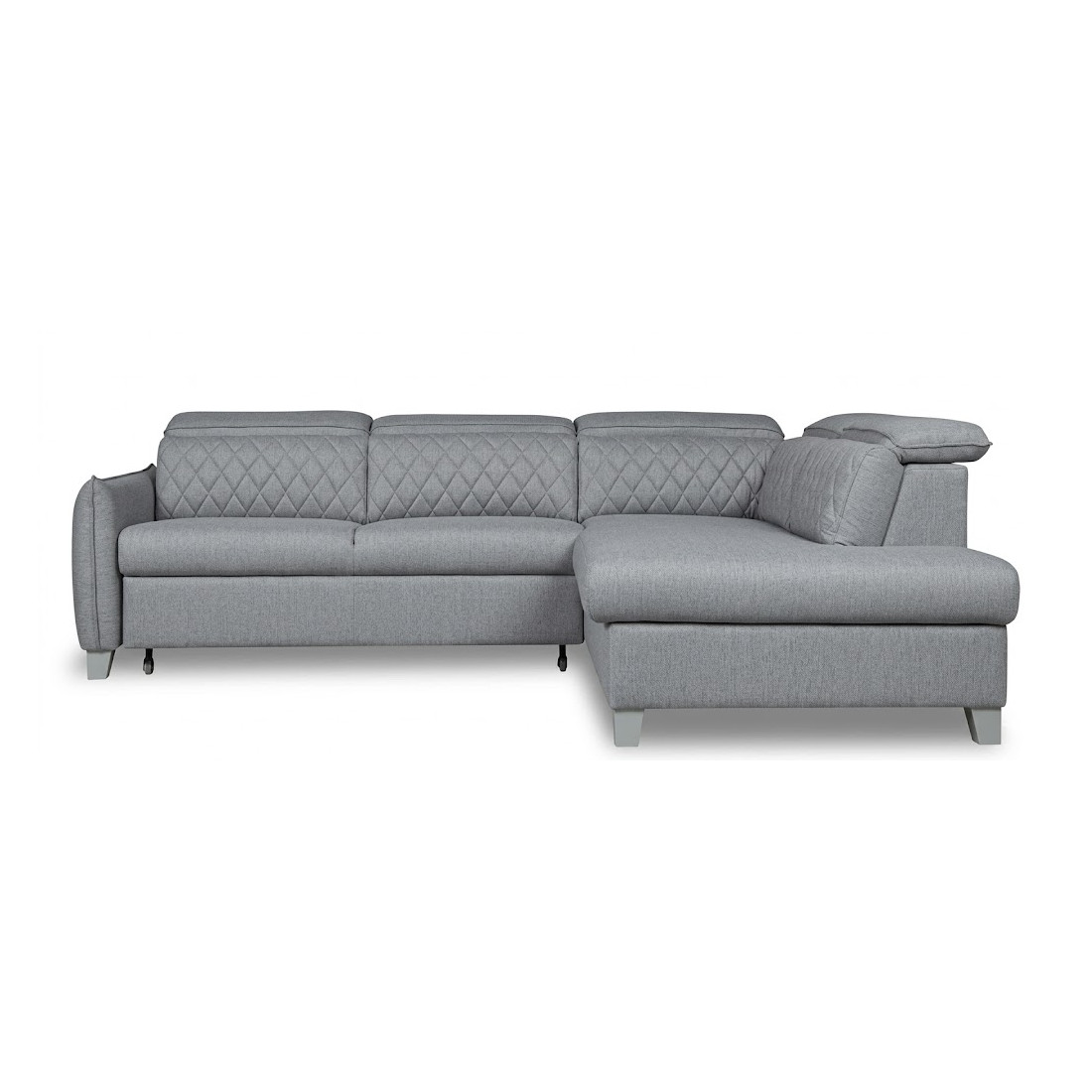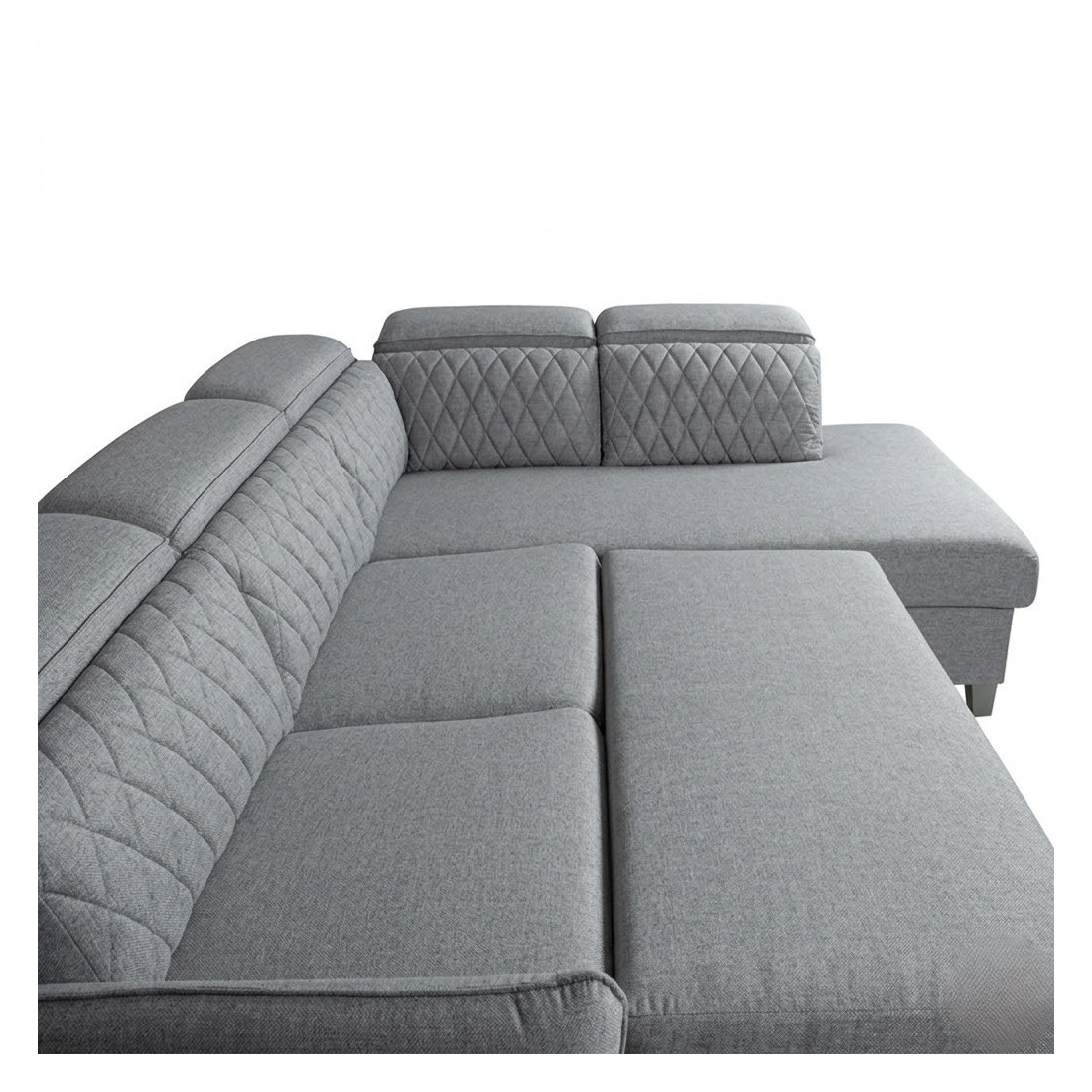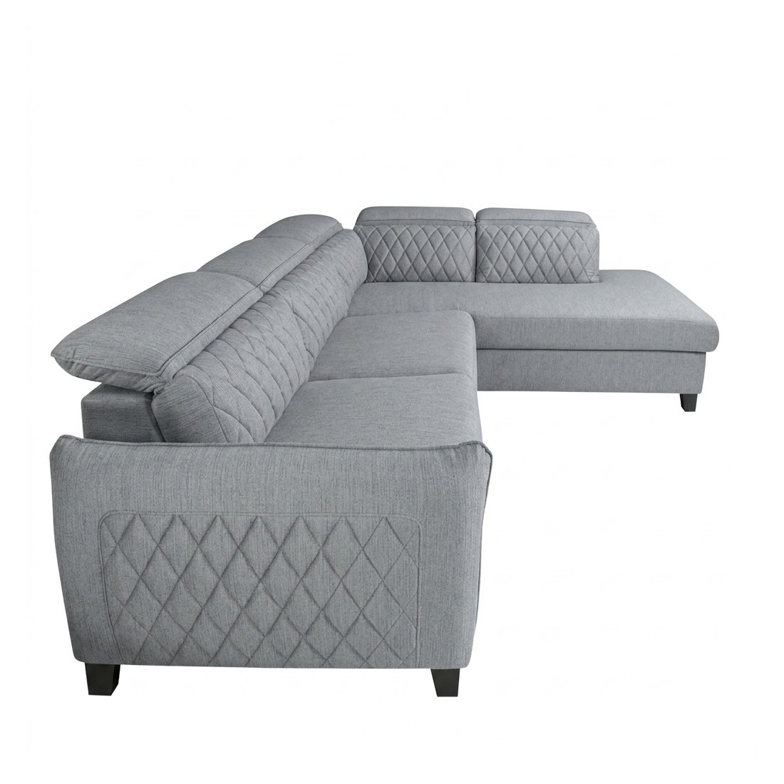 Coltar Extensibil Cu Otoman Dreapta Tiago, 5 Locuri, Tetiere Reglabile, Gri, 255 Cm