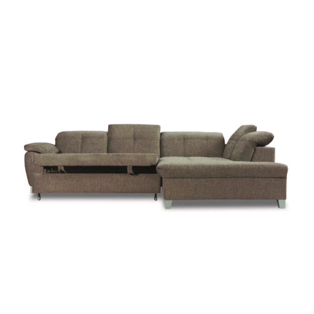 Nuanța de maro a acestui colțar adaugă un aer de rafinament și căldură în orice decor interior. Materialele de calitate și finisajele atent lucrate completează aspectul sofisticat.