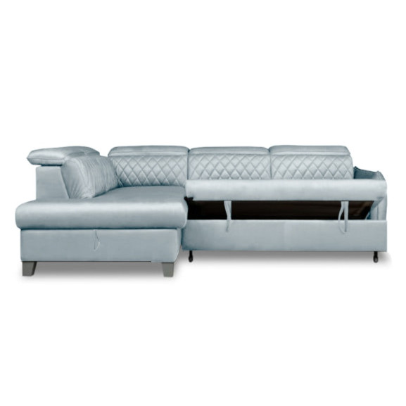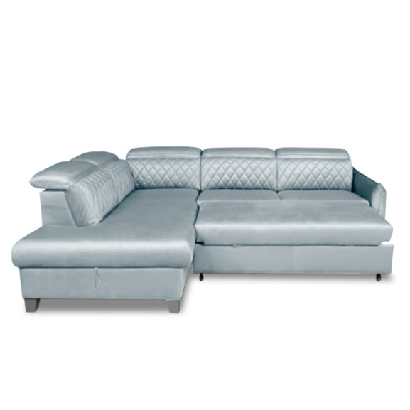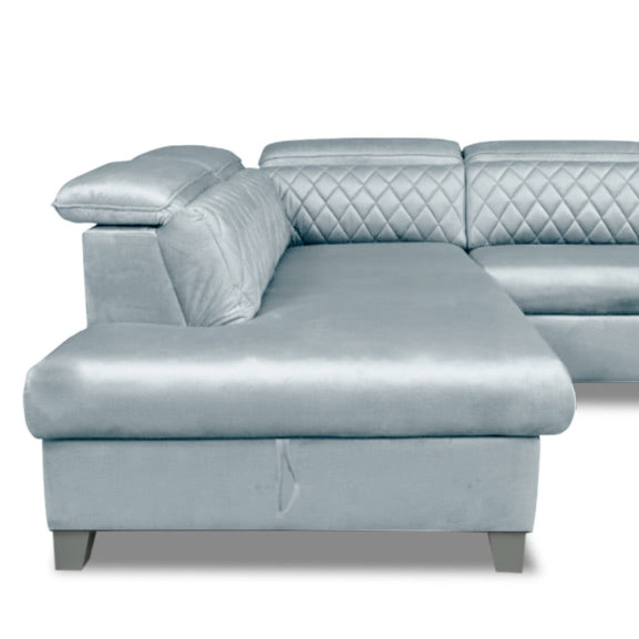 Coltar Extensibil Cu Otoman Stanga Cu Lada Tiago, 5 Locuri, Tetiere Reglabile, Gri, 255 Cm