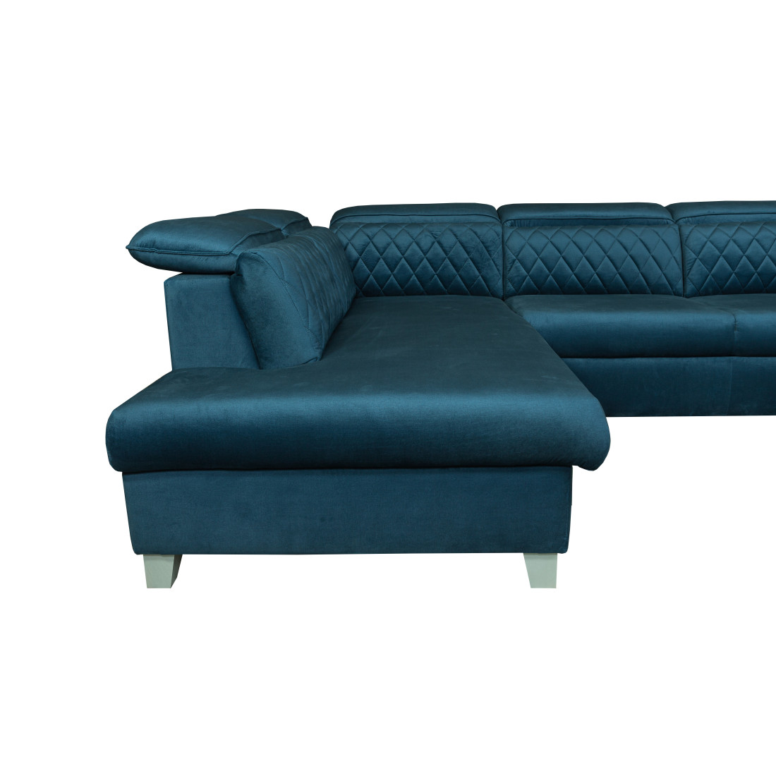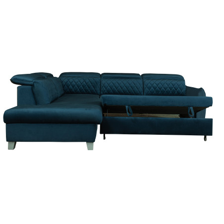Coltar Extensibil Cu Otoman Stanga Tiago, 5 Locuri, Tetiere Reglabile, Albastru, 255 Cm