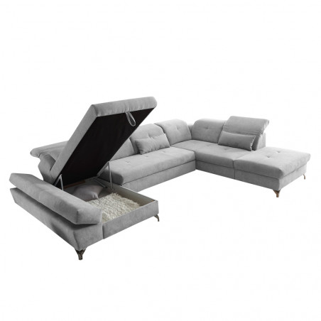 Coltar Extensibil Dreapta Cu Lada Meli, Argintiu, 350 X 73 (96) X 245 Cm