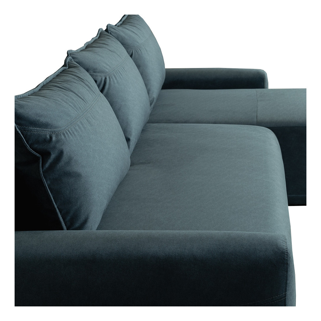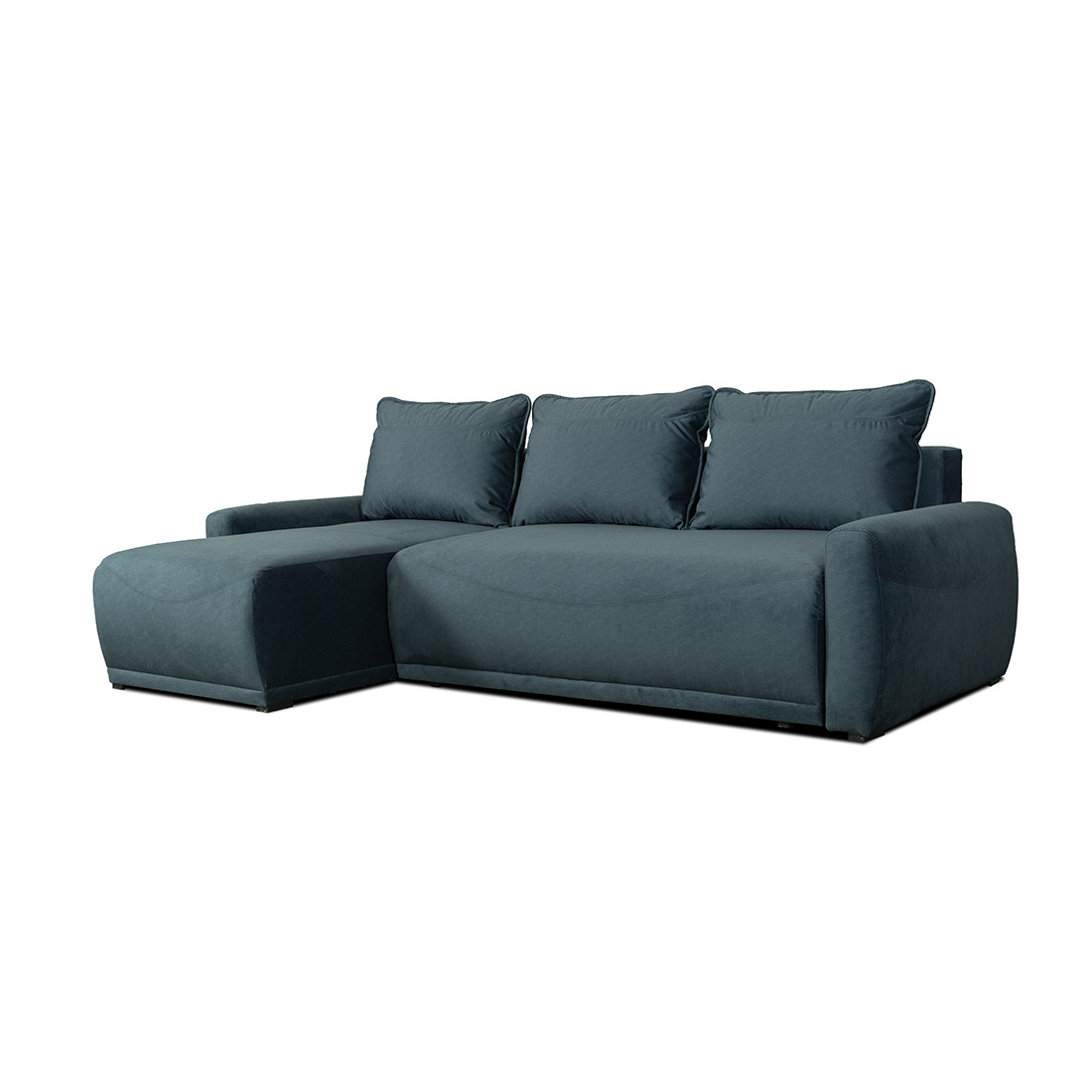 Coltar Extensibil Lea Interschimbabil Stanga/Dreapta, 5 Locuri, Lada Depozitare, Albastru, 256 Cm